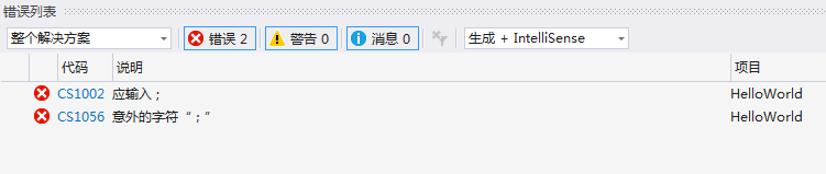 图1-12 编译错误列表图