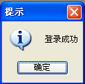 DialogResult dr = MessageBox.Show("登录成功", "提示", MessageBoxButtons.OK, MessageBoxIcon.Asterisk);