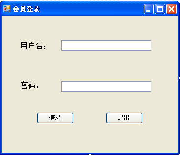 会员管理系统登陆窗体(FrmLogin)实现,用户输入正确的用户名和密码后,单击“登录”按钮,弹出提示“登录成功”的消息对话框,单击“确定”按钮消息框,关闭登录窗体,单击“退出”按钮,结束整个应用程序。