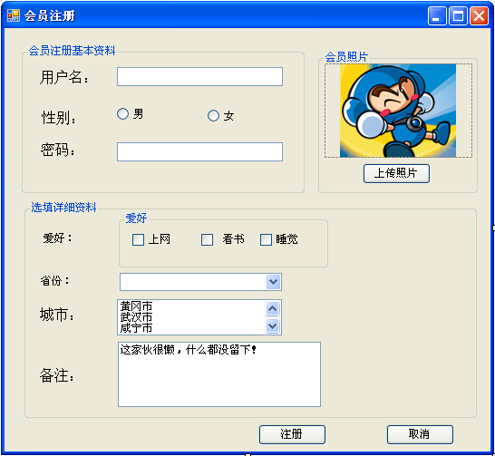 图4-16 会员注册窗体