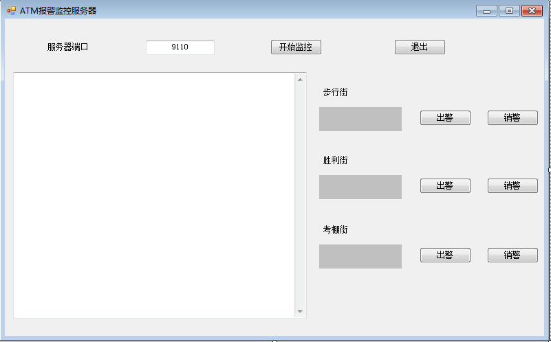 服务器端创建连接后,要实现客户端的信息监控,当客户端发送“报警”信息后,服务器端接收到信息要进行相应的“出警”处理,当客户端请求“撤消报警”后,服务器端接收到信息后要进行相应的“撤消警告”处理。