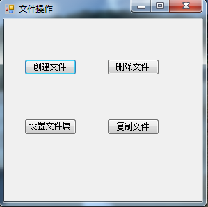 新建windows窗体应用程序,添加四个按钮,实现文件的创建、删除、文件属性设置和复制操作。程序主界面如图7-12所示: