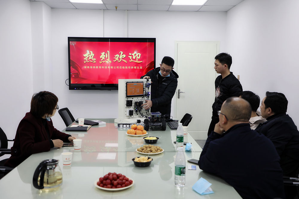 2021年3月2号下午,湖南海纳教育科技有限公司任毅总经理一行三人就“高职人工智能服务专业建设”到我司进行调研,唯众产品技术总监陈家枫、销售部经理李莉进行了热情接待。