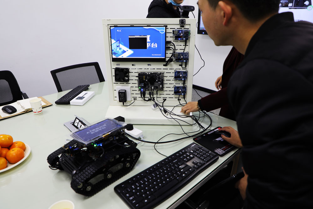 座谈会中,唯众产品技术总监陈家枫详细介绍了公司人工智能发展状况与未来规划,经过现场演示与座谈交流,双方针对目前高职人工智能专业现状、趋势及发展难点进行了探讨。任总针对公司高职人工智能专业建设、人工智能教学平台等多方面进行了详细询问,获得专家解答后调研组领导对我们公司产品表达了认可。