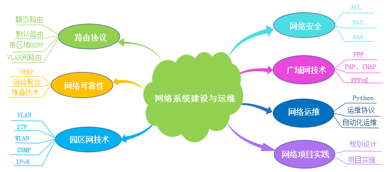 | 11.网络自动化运维项目实践 | 1. 掌握Python运维常用库和常用语法 2. 掌握通过Python代码管控网络设备 3. 掌握通过Python代码备份网络设备运行配置应用 4. 掌握自动化运维项目需求分析 5. 掌握自动化运维项目规划和设计原则 6. 掌握自动化运维项目实施步骤和方法 7. 掌握自动化运维项目测试步骤和方法 |