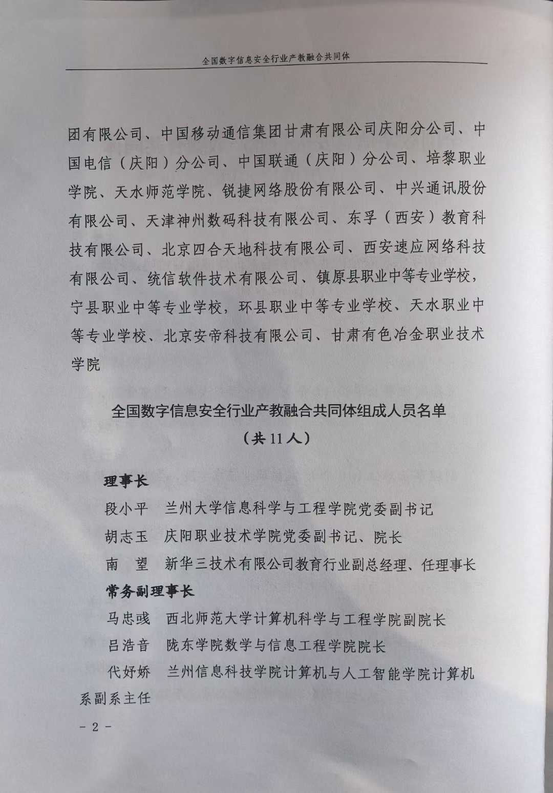 同时,共同体的理事单位同样阵容强大,涵盖了甘肃诚龙信息科技有限公司、杭州喜马拉雅信息科技有限公司、浙江舜宇光学有限公司、智谱清言教育、华为技术有限公司、龙芯中科股份有限公司、北京新大陆时代教育科技有限公司、东软教育科技集团有限公司、中国移动通信集团甘肃有限公司庆阳分公司、中国电信(庆阳) 分公司、中国联通 (庆阳) 分公司、锐捷网络股份有限公司、中兴通讯股份有限公司、天津神州数码科技有限公司、东孚 (西安) 教育科技有限公司、北京四合天地科技有限公司、统信软件技术有限公司、西安速应网络科技有限公司、培黎职业学院、天水师范学院、镇原县职业中等专业学校、酒泉职业技术大学、宁县职业中等专业学校、环县职业中等专业学校、天水职业中等专业学校、北京安帝科技有限公司、甘肃有色冶金职业技术学院等27 家企业及院校。