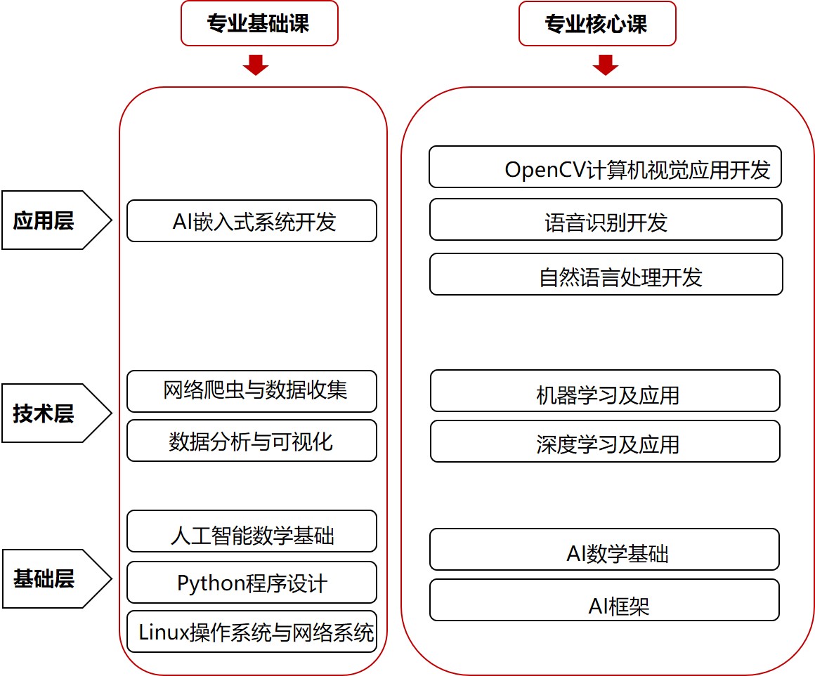 从人工智能的这三个层次来对人工智能课程体系进行立体划分,如下图所示。