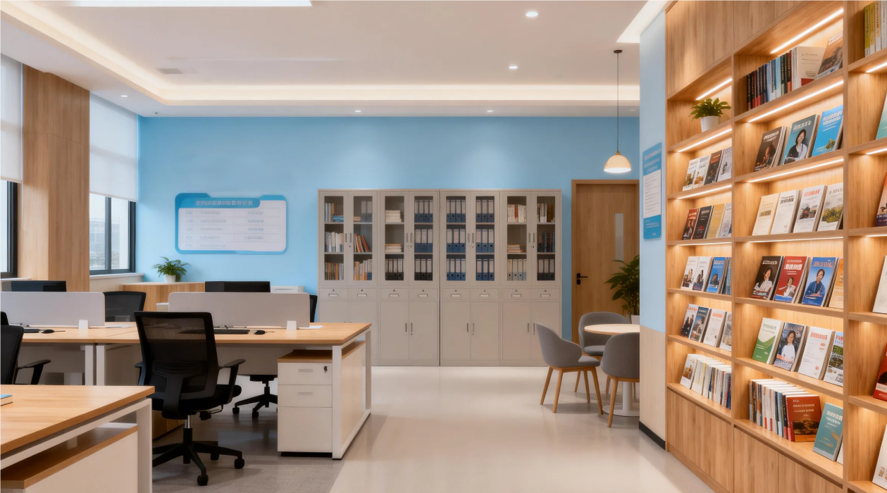 为了方便管理员工的心理档案,室内还设置档案柜,档案柜采用防火、防潮材料制作,能够确保档案的安全保存。员工的心理档案包含个人基本信息、测评结果、咨询记录等内容,这些档案将严格保密,只有经过授权的专业人员才能查阅。